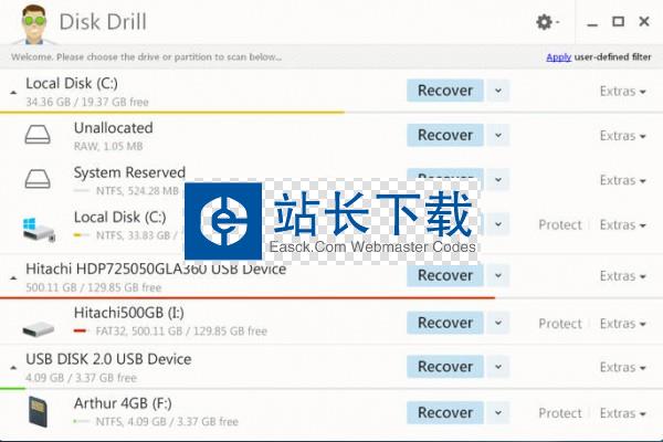 1、与平台无关:Disk Drill由多种数据恢复算法支持,可以读取NTFS, FAT32, EXT, HFS+和其他的文件系统。