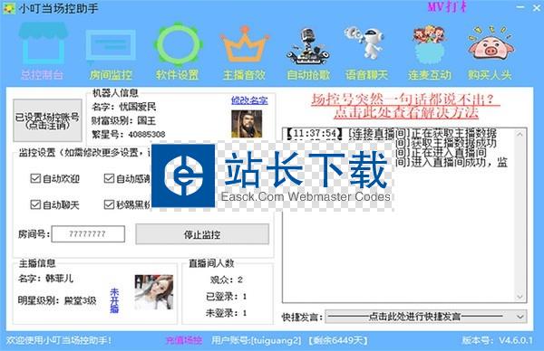 小叮当场控助手是用于对直播间进行场控,可以自动发送感谢送礼的文字,当检测到有用户刷礼物的时候本软件就可以自动感谢,也支持自动发送欢迎访问直播间的文字内容,让每个访问直播间的用户都可以查看到欢迎内容!
